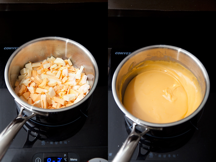 치즈로 만든 딥소스는 자칫 느끼하지 않을까 싶지만, 레몬즙 같은 신미 있는 재료를 더해줘서 산뜻함을 더해주는 것이 팁! 5분이면 오케이! 체다와 고다가 만난 멜팅치즈딥소스 만드는 방법 소개해드릴게요~