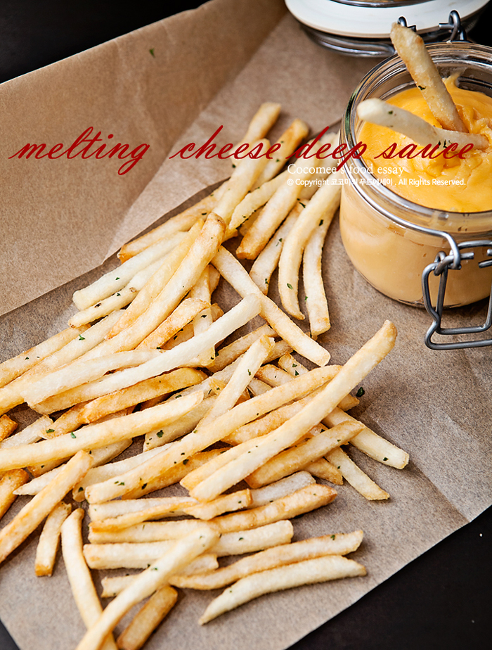 서울우유 홍보대사로 활동하면서 치즈류를 많이 만나게 되다 보니 치즈로 만들 수 있는 소스에도 관심을 기울이게 되었어요. 마침 요리잡지를 보는데 감자튀김 먹는 재미를 더해주는 딥소스에 대해 소개한 페이지가 있더라고요. 시중에서 구하기 쉬운 재료들로 딥소스를 만들어보면 좋겠다, 싶었는데 그중에 체다치즈와 고다치즈로 만들 수 있는 멜팅치즈딥소스가 눈에 띄었어요. 만드는 방법도 굉장히 간단해요!