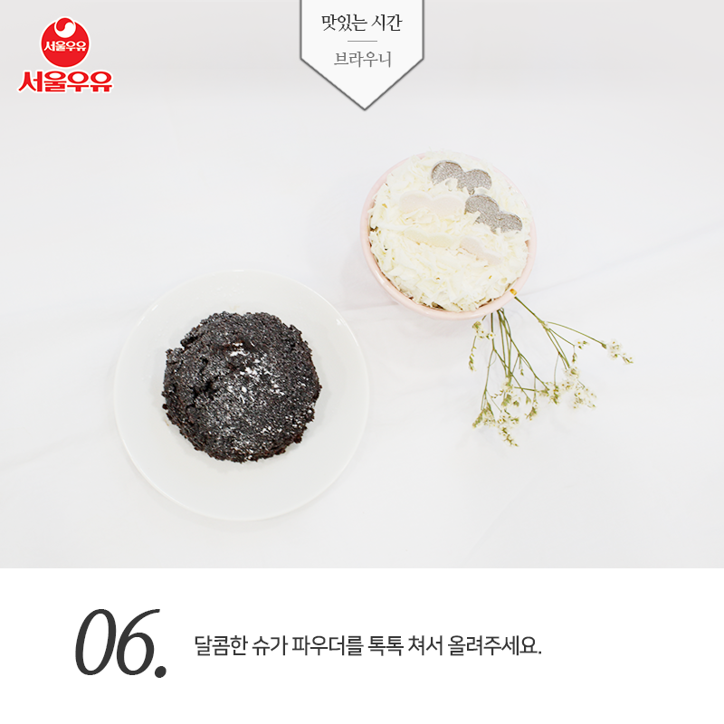 순식간에 달콤한 브라우니 디저트 완성! 목장의 신선함이 살아있는 우유가 들어가 더 부드러워요 :D