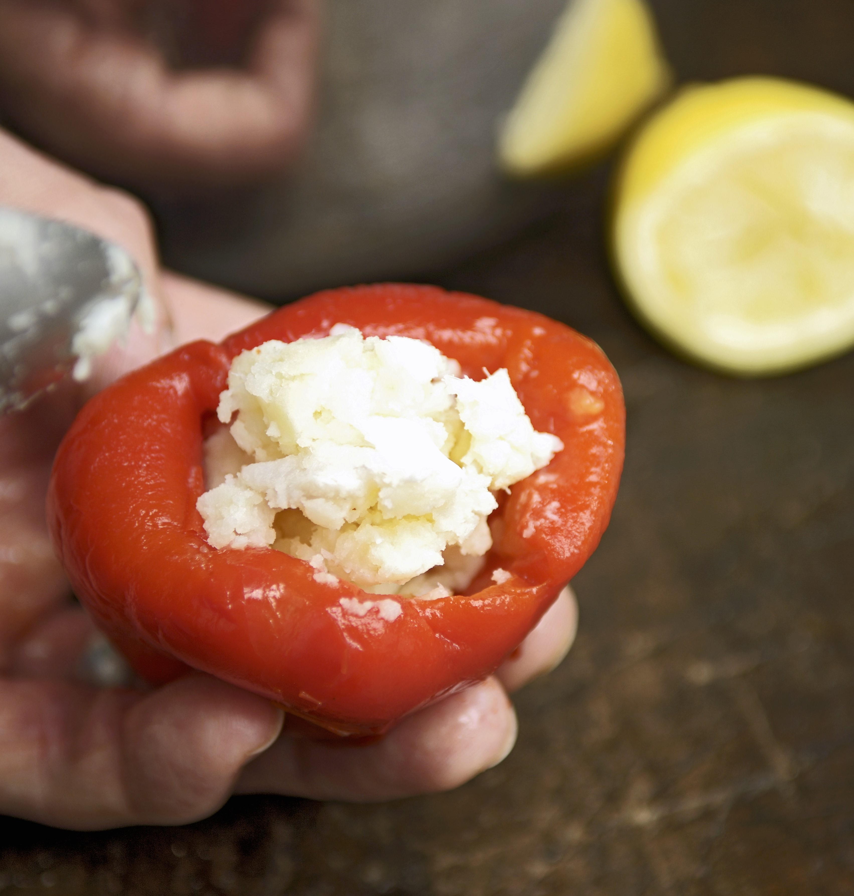 5. 속을 파낸 토마토 안에 4번의 그릭요거트를 채워줍니다.