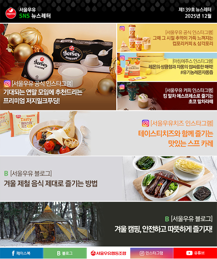 [매거진] 서울우유 SNS 뉴스레터 2025년 12월호 매거진 2025/12/30 16:40 SEOULMILK 2512_SNSNewsletter More from my site[매거진] 서울우유 SNS 뉴스레터 2023년 12월호[매거진] 서울우유 SNS 뉴스레터 2022년 12월호[매거진] 서울우유 SNS 뉴스레터 2024년 12월호[매거진] 서울우유 SNS 뉴스레터 2021년 12월호[매거진] 서울우유 SNS 뉴스레터 2025년 6월호[매거진] 서울우유 SNS 뉴스레터 2025년 10월호 Related Posts:2025년 전국 해수욕장 개장 총정리!2025년 설날 센스 있는 인사말 추천[매거진] 서울우유 SNS 뉴스레터 2024년 12월호2025년 전국 일출 시간 & 명소 알아보기[매거진] 서울우유 SNS 뉴스레터 2023년 12월호