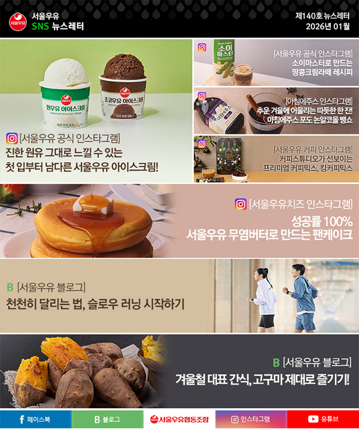 [매거진] 서울우유 SNS 뉴스레터 2026년 1월호 매거진 2026/01/30 11:49 SEOULMILK 2601_SNSNewsletter More from my site[매거진] 서울우유 SNS 뉴스레터 2024년 1월호[매거진] 서울우유 SNS 뉴스레터 2025년 1월호[매거진] 서울우유 SNS 뉴스레터 2023년 1월호[매거진] 서울우유 SNS 뉴스레터 2025년 7월호[매거진] 서울우유 SNS 뉴스레터 2025년 11월호[매거진] 서울우유 SNS 뉴스레터 2025년 9월호 Related Posts:2026년 1월 1일 일출 시간 총정리[매거진] 서울우유 SNS 뉴스레터 2024년 10월호[매거진] 서울우유 SNS 뉴스레터 2024년 11월호[매거진] 서울우유 SNS 뉴스레터 2024년 12월호[매거진] 서울우유 SNS 뉴스레터 2025년 5월호