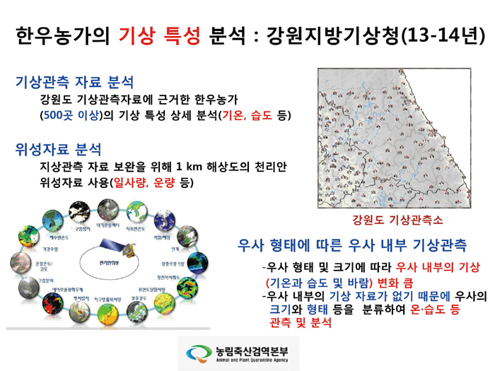 이러한 손실을 막기 위해 이상기후에 대비한 적극적인 시설 및 환경 개선, 종축개량 등 체계적이고 종합적인 조치가 필요할 것입니다. 폭염이나 한파 등에 의한 농장의 피해를 최소화하기 위해서는 관련 기관과의 협력 시스템 구축을 통한 기상정보 시스템을 제공하고, 적정 축사 환경 제시 등의 다양한 연구 및 대응 방안 제시가 먼저 이루어져야 합니다. 농가에서는 환경 계측 센서 설치 및 기상정보를 활용, 사육 환경 최적화를 위한 축사 리모델링 및 사양관리방법 개선 등의 조치를 통해 젖소의 생산성 저하 요인을 최소화하는 등의 적극적인 조치가 필요합니다.